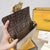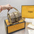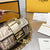 - Signature square Baguette mini bag. Made of gold leather with a graphic gold laser perforation effect resembling the brand's metal mesh. Three Medusa safety pin brooches accent the front flap. Double F closure with brooch.