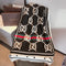 - Eternal works continue to enhance the brand's most iconic symbols in unexpected ways. Here. the GG pattern on this blue wool scarf appears in a vibrant contrasting jacquard pattern. and is embellished with brand-fixed red and green stripes.