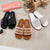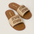 - This raffia-textured fabric flat shoe reflects the brand's iconic style and is full of summer style. The raised letter logo adds a unique classic style.
